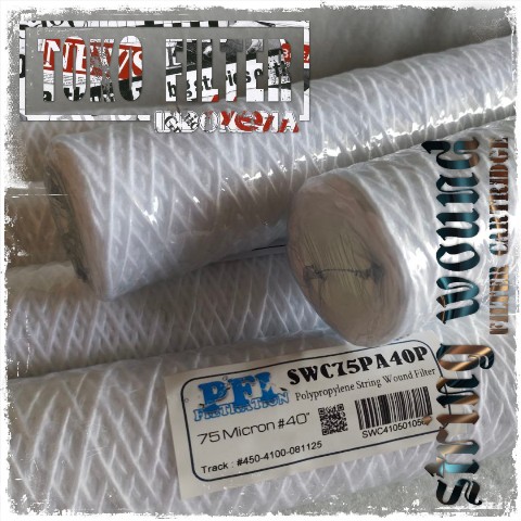 Cartridge Filter Benang 75 Micron 40 Inch adalah ultra coarse yarn wound filter cartridge berbahan polypropylene (PP) untuk tahap paling awal filtrasi air baku. Digunakan pada intake system, EPC water treatment, power plant, serta industri minyak sawit & oleochemical dengan kondisi air sangat kotor.